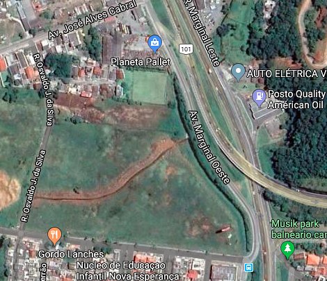 Terreno situado à margem direita (sentido sul), frente para BR 101 no km 139, com 32.000 m² sem benfeitorias.